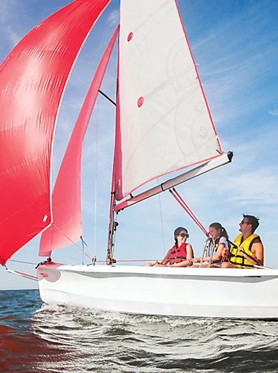 Sail, row, or motor; the Bahia has it all. The Bahia’s versatile design provides a great platform for leisure or racing for the whole family. Slow to invert, and easy to right and re-board the Bahia makes safety one of its strongest features. Ideal for weekend adventures, the Bahia is comfortably beached, rowed or motored without compromising performance. And with a simple addition of a trapeze kit, you’re off to the races!